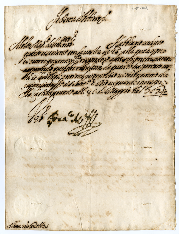Lettera di Francesco Maria duca di Urbino ad Orazio Albani senior (1624 maggio 31)
