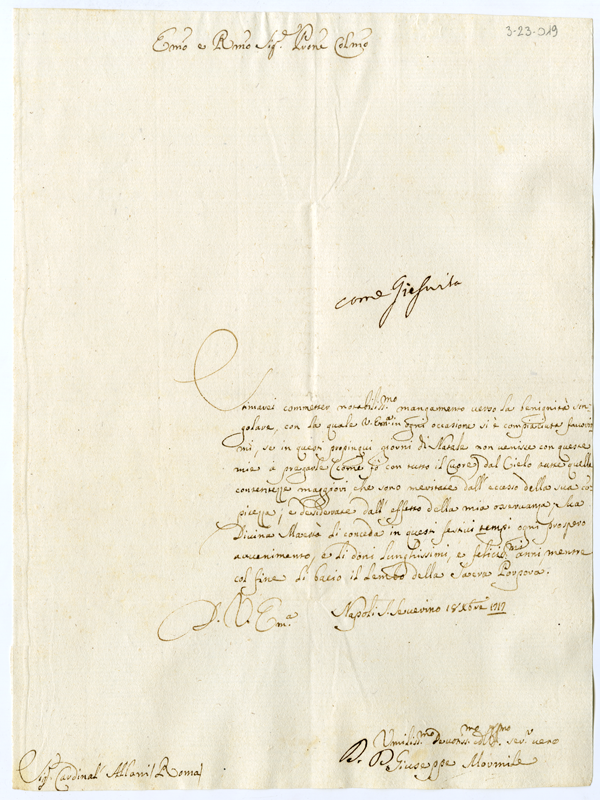 Lettera di don Giuseppe Mormile al cardinale Annibale Albani (1717 dicembre 18)