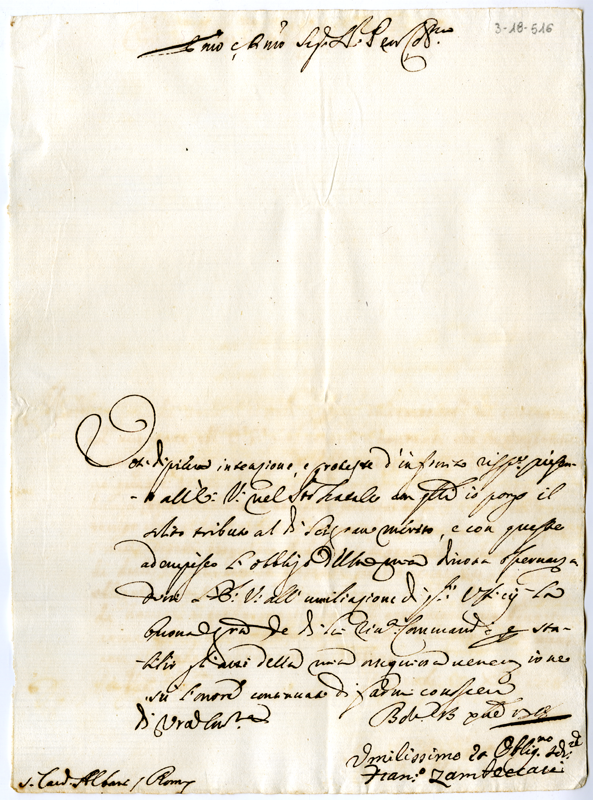 Lettera di Francesco Zambeccari ad Annibale Albani (1718 dicembre 13)