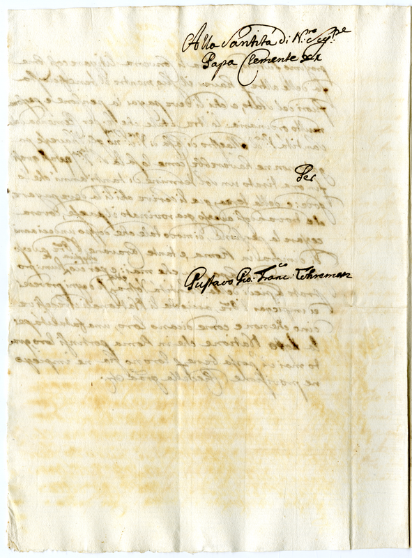 Lettera di Gustavo Giovanni Francesco Lehreman a Clemente XI (1700-1721)
