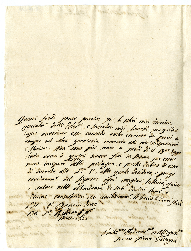 Lettera di Pietro Saragni a papa Clemente XI (1721 marzo 1)