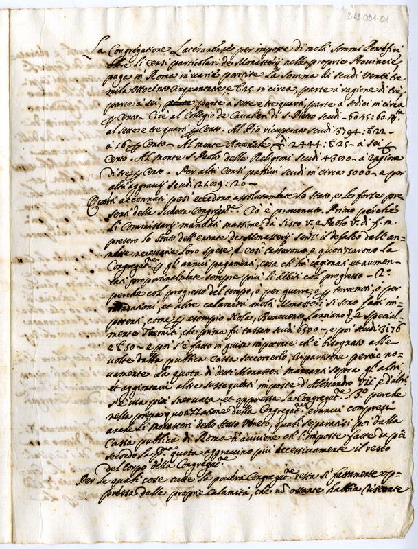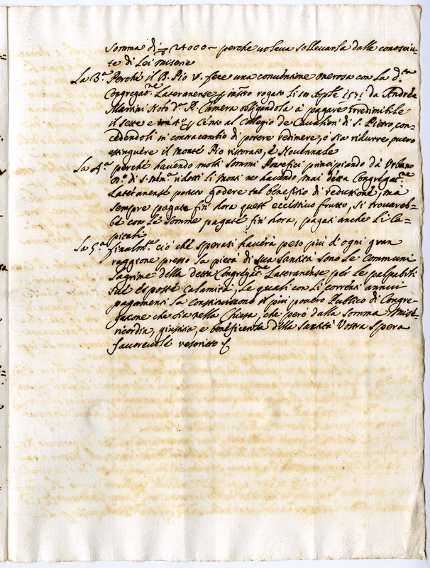 Relazione sullo stato della congregazione lateranense relativamente agli aggravi camerali e contratti censualisti (1691-1700)