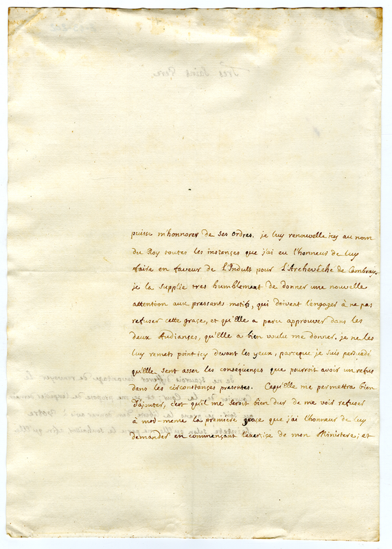 Rinnova a nome del re tutte le istanze in favore dell'indulto per l'arcivescovo di Cambrai