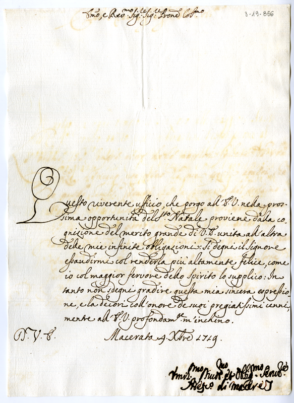 Lettera del vescovo di Macerata ad Annibale Albani (1719 dicembre 4)