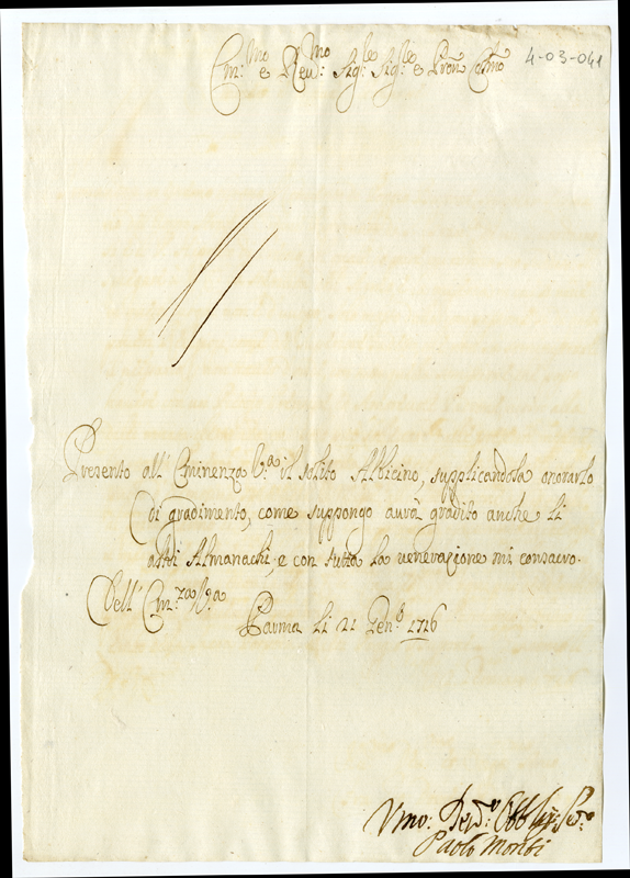 lettera di Paolo Monti al cardinale Annibale Albani (1716 gennaio 21)