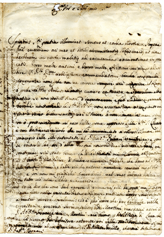 Lettera del Vescovo di Alessandria al Padre Definitore Magnani (1706 gennaio 17)