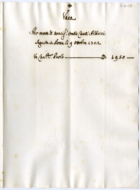 Canonicato vacante per morte di Orazio Cianti Alberini (1702 ottobre 9)