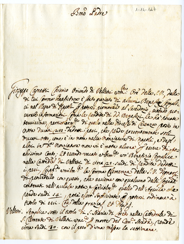 Supplica del chierico Giuseppe Capretti a Clemente XI