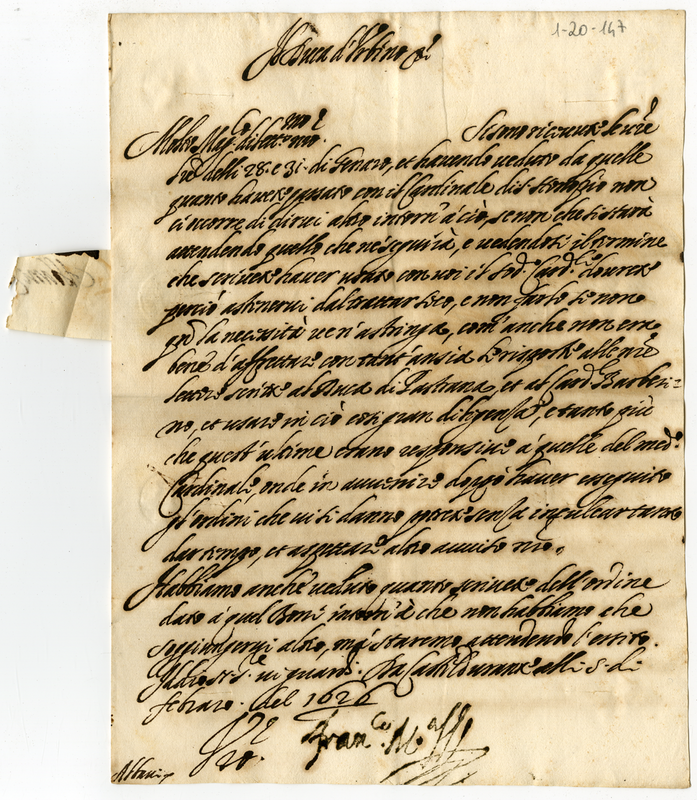 Lettera di Francesco Maria duca di Urbino a Orazio Albani (1626 febbraio 5)