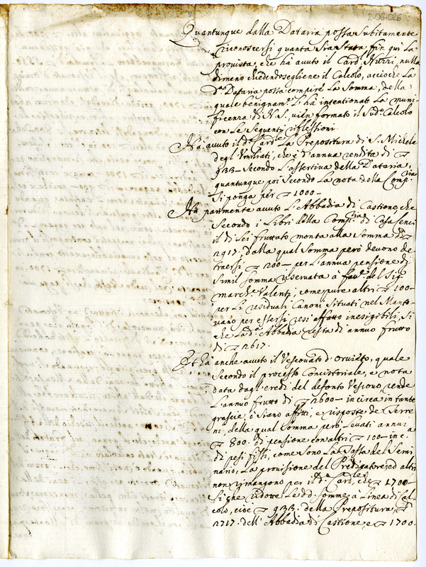 Memoria sulle rendite del Cardinale Nuzzi (1700-1721)
