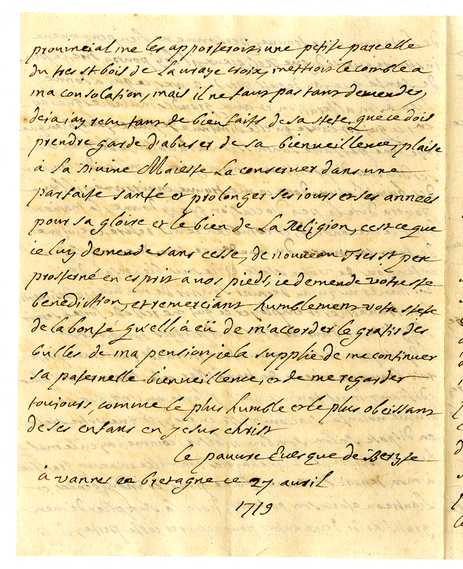 Lettera del vescovo di Berylle a papa Clemente XI (1719 aprile 27)