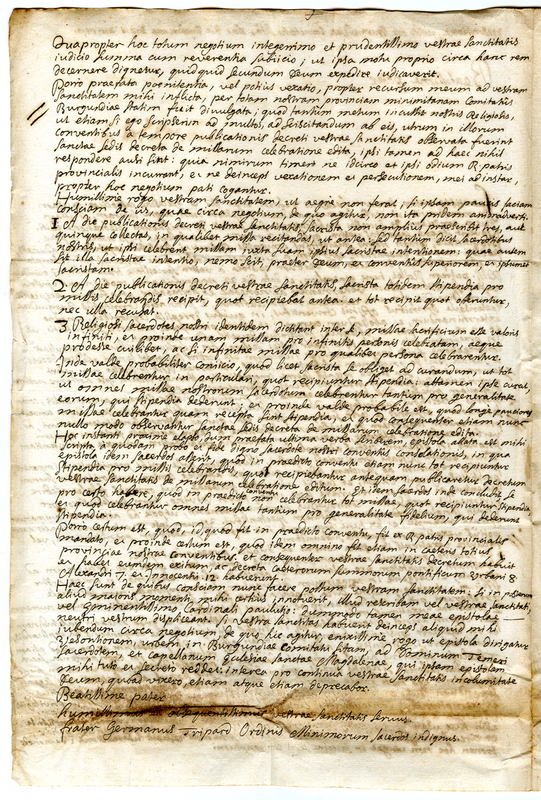 | dc.description | Esposto di un lettore della provincia del comitato di Burgundia al pontefice su una pena inflittagli dal padre provinciale, che egli dichiara di accettare, pur se ingiusta, a meno che non torni a disonore della santa sede | |