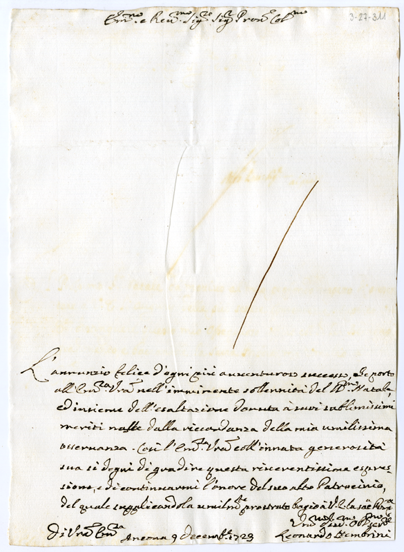 Lettera di Leonardo Nembrini al cardinale Annibale Albani (1723 dicembre 9)