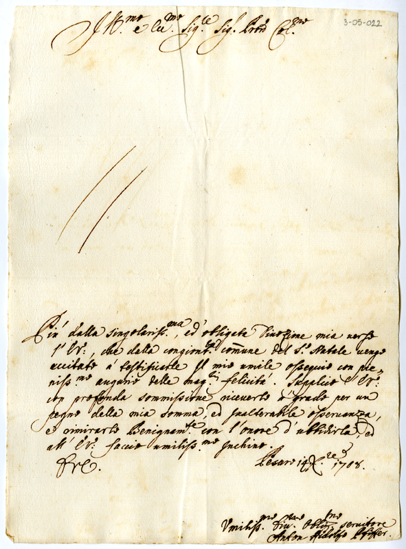 Lettera di Anton Ridolfo Pfiffer ad Annibale Albani (1708 dicembre 14)