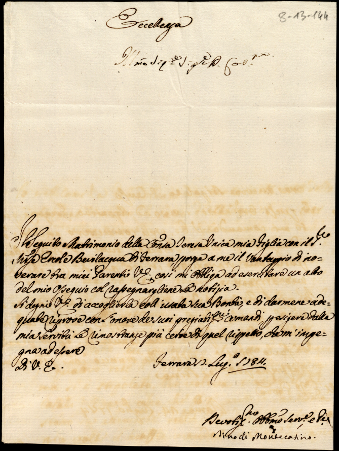 Lettere diverse ricevute in Colbordolo, Pesaro e Senigallia nel 1784