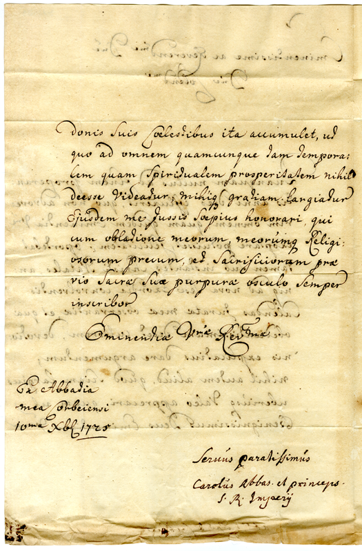 Lettera dei Carlo abate principe del Sacro Romano Impero al cardinale Annibale Albani (1725 dicembre 10)