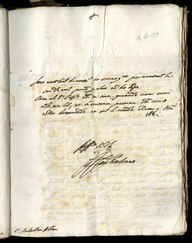 Lettera del cardinale Barberini Francesco senior a Malatesta Albani (1641 ottobre 9)