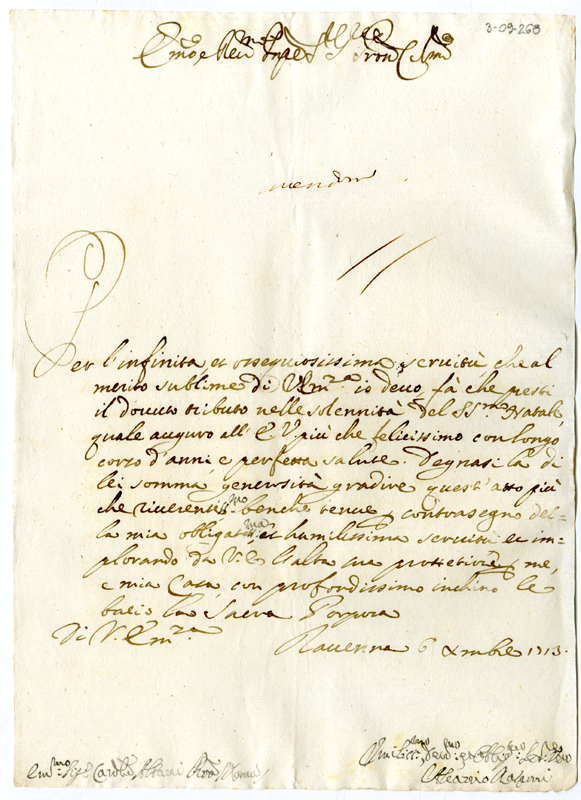 Lettera di Galeazzo Aguzzi al cardinale Annibale Albani (1713 dicembre 6)