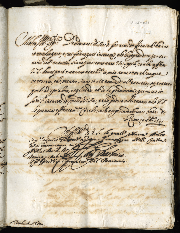 Lettera del cardinale Barberini Francesco senior a Malatesta Albani (1641 ottobre 9)
