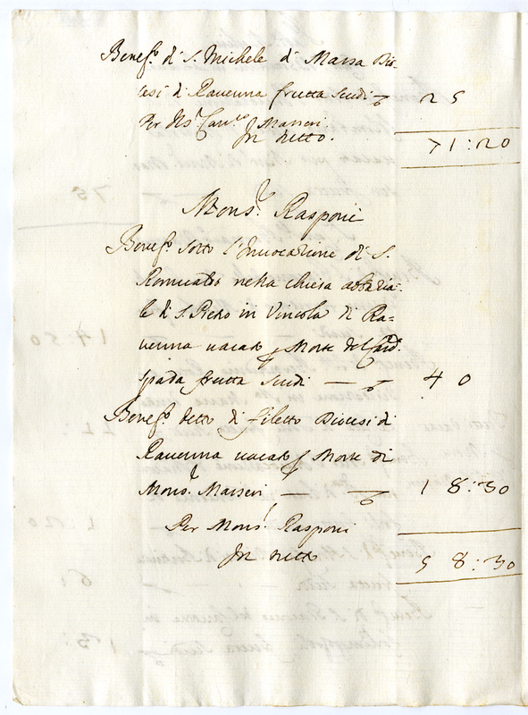 | dc.title.alternative | Benefici per l'abate Merlini, per il canonico Bernardino Maseri, per monsignor Rasponi (1700-1721) | |