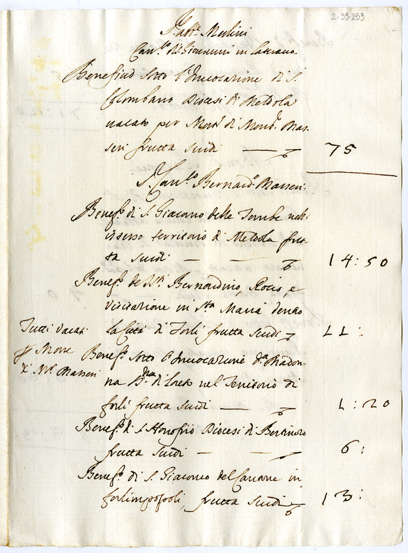 Benefici per l'abate Merlini, per il canonico Bernardino Maseri, per monsignor Rasponi (1700-1721)