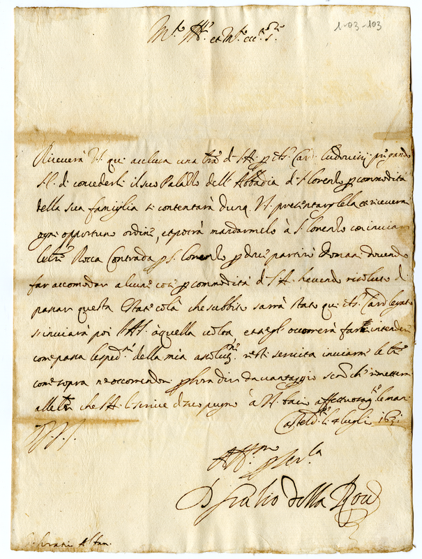 Lettera di Giulio Della Rovere (1631 luglio 4)