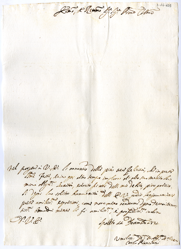 Lettera di Carlo Pianciani al cardinale Annibale Albani (1731 dicembre 11)
