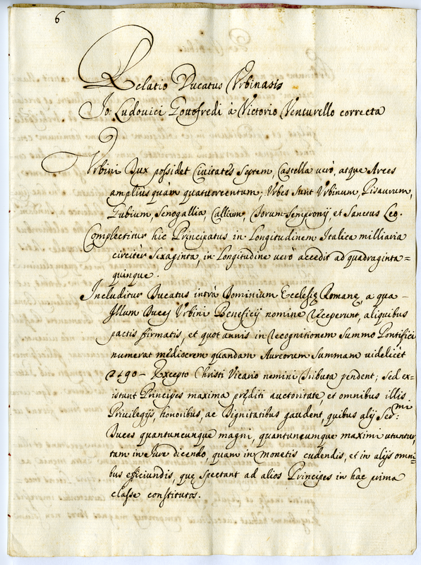 Relatio Ducatus Urbinatis Io. Ludovici Gottofredi a Victorio Venturello correcta