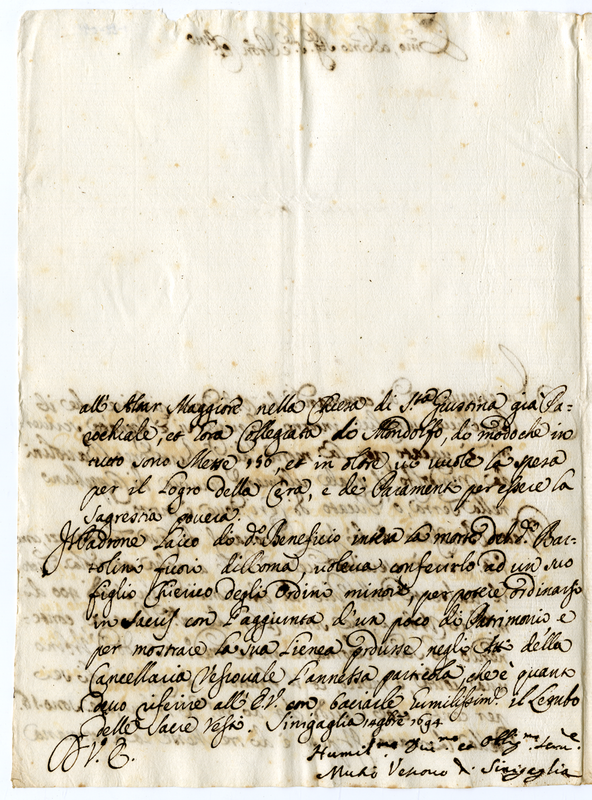 Lettera del Vescovo di Senigallia a un Cardinale (1694 novembre 14)