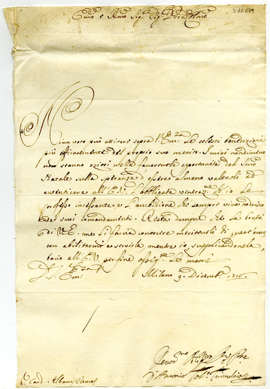 Lettera di Antonio colonnello Crivallion al cardinale Annibale Albani (1716 dicembre 9)
