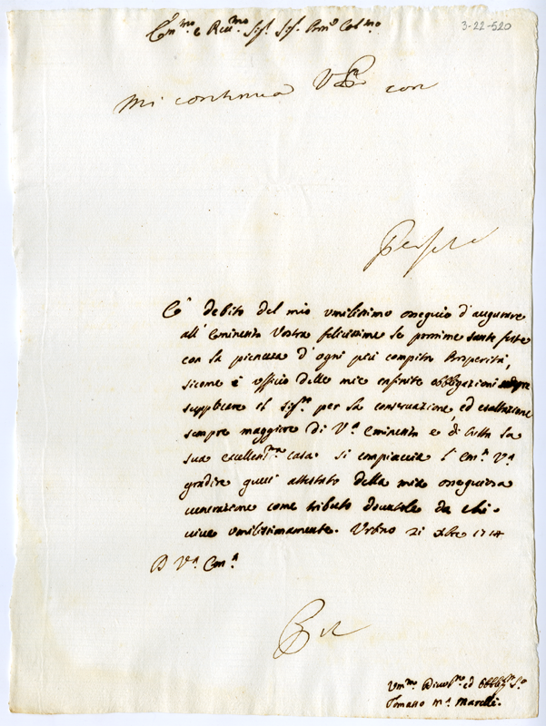 Lettera di Tomasso Maria Marelli al cardinale Annibale Albani (1714 dicembre 21)