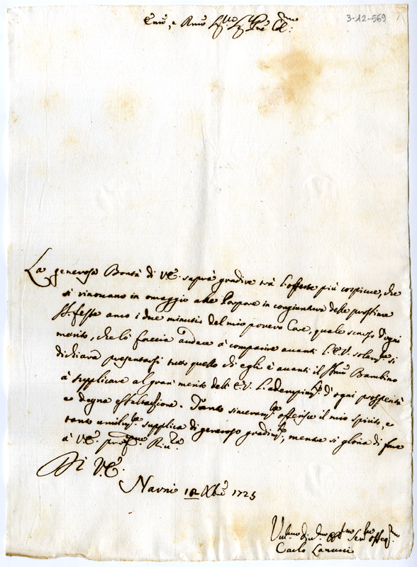 Lettera Carlo Lanucci al cardinale Annibale Albani (1725 dicembre 12)