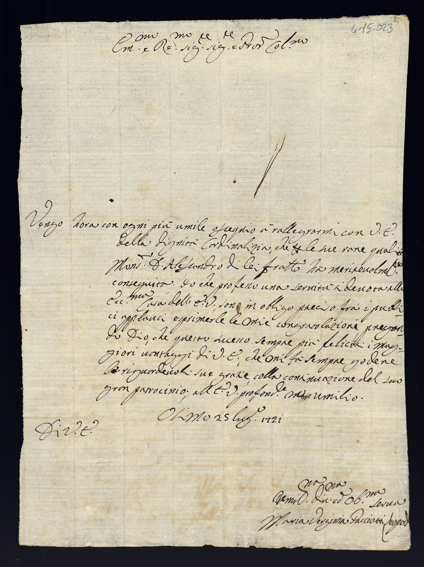 Lettere di congratulazione per l'esaltazione alla Porpora dell'eminentissimo cardinale Alessandro Albani