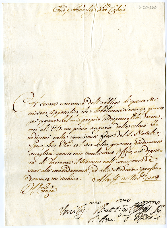 Lettera di Antonio d'Efeso al cardinale Annibale Albani (1728 dicembre 21)
