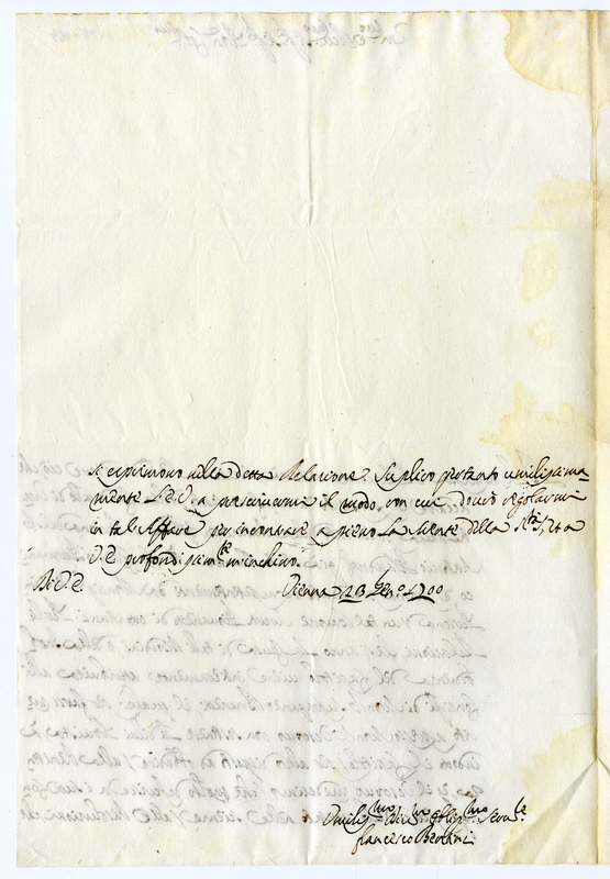 Lettera di Francesco Bentini a un Cardinale (1700 gennaio 23)