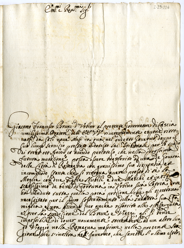 Lettera di Giacomo Francesco Bruni ai cardinali della sacra consulta (1700-1721)