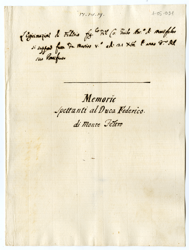 Cartella contenente 3 documenti riguardanti Federico da Montefeltro