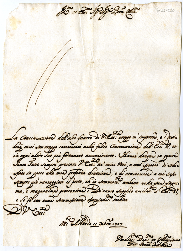 Lettera di Giovanni Battista Boldrini ad Annibale Albani (1707 dicembre 12)