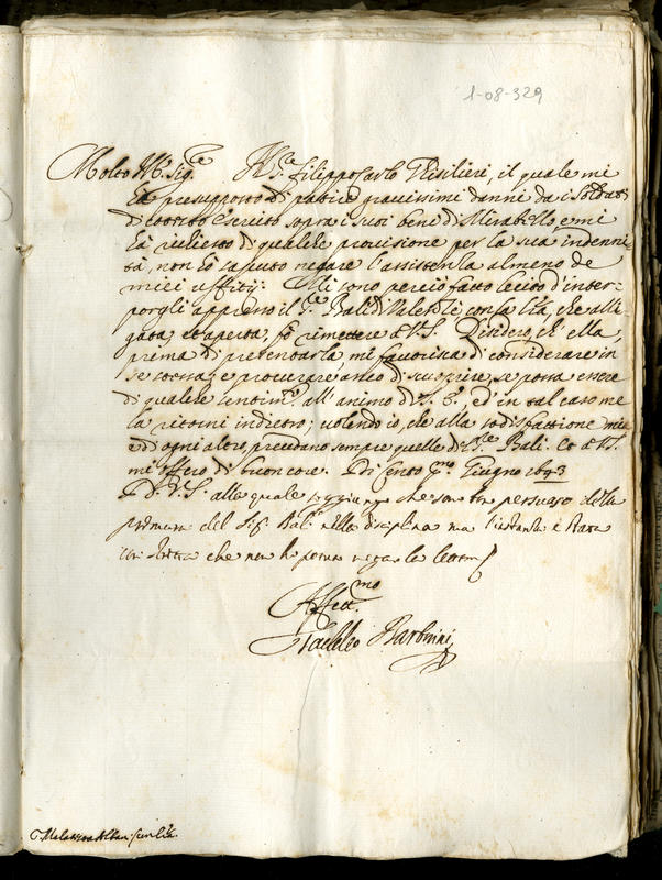 Lettera di Barberini Taddeo a Malatesta Albani (1643 giugno 1)