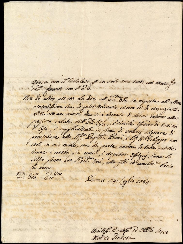 Lettere diverse ricevute in Colbordolo, Pesaro e Senigallia nel 1784