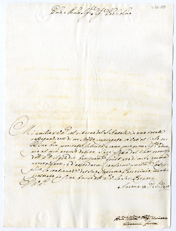 Lettera di Giovanni Ferretti al cardinale Annibale Albani (1720 dicembre 12)