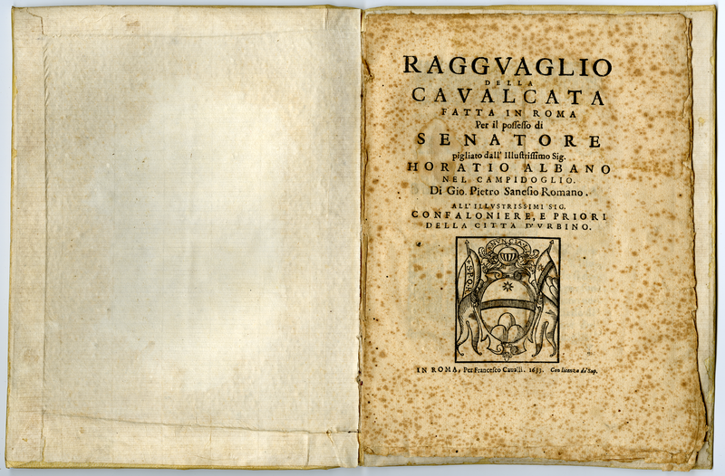 Ragguaglio della cavalcata fatta in Roma per il possesso di senatore pigliato dall'illustrissimo sig. Horatio Albano nel Campidoglio. Di Gio. Pietro Sanesio romano