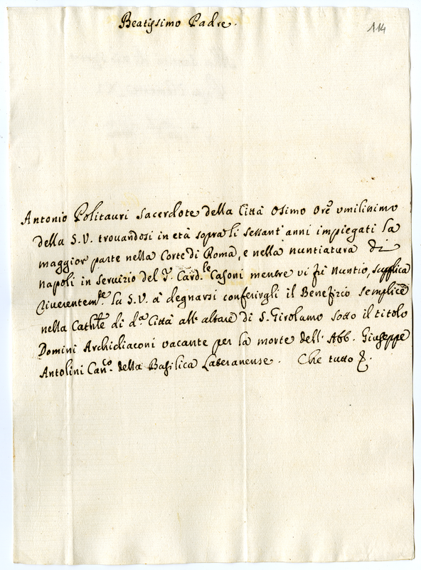 Memoriali, lettere, e suppliche di varie persone sopra diversi affari e bisogni presentate alla santa memoria di papa Clemente XI. 6