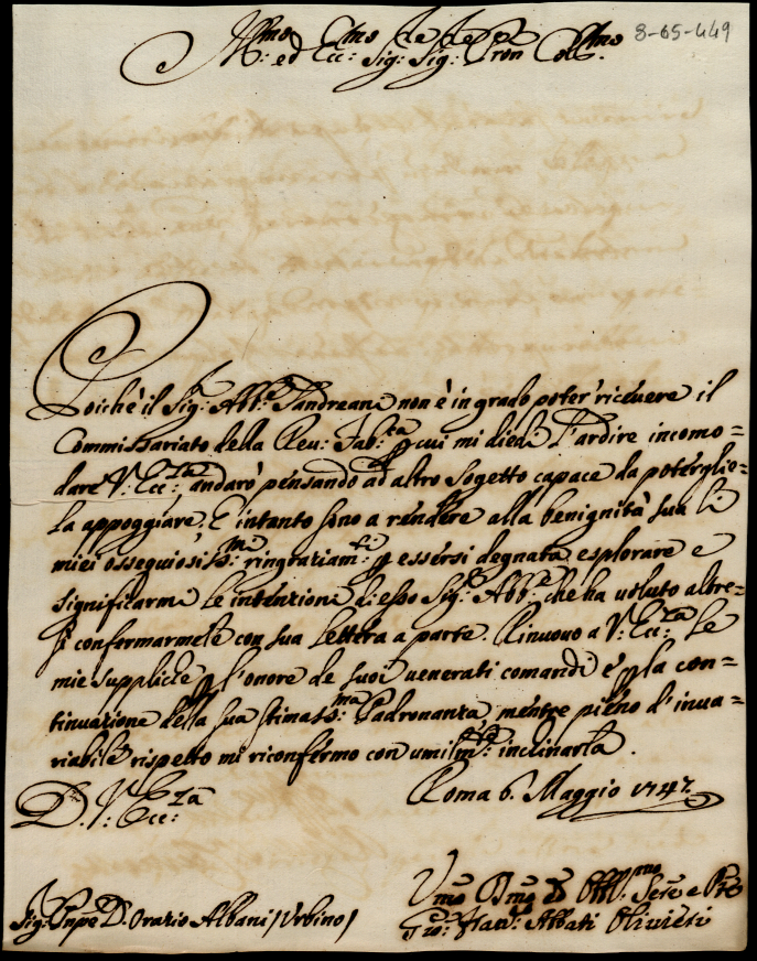 Lettere ricevute in Urbino dal Signor Principe Orazio Albani ultimo di questo nome nell'anno 1747