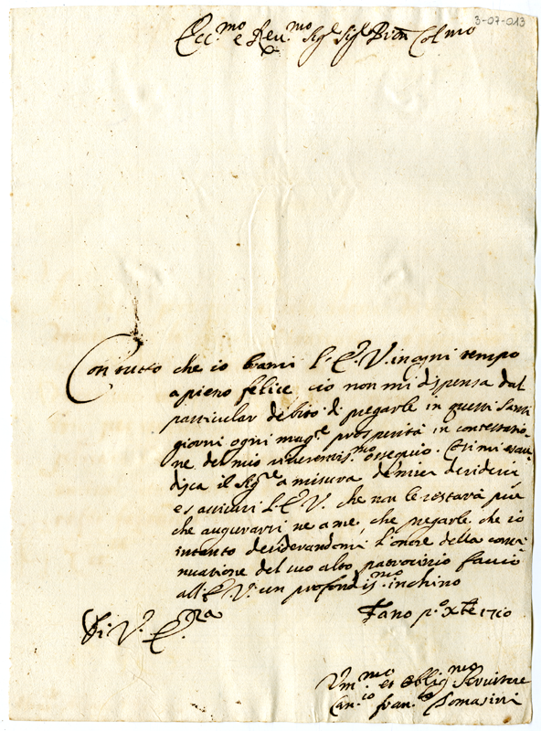 Lettera di Francesco Tomasini ad Annibale Albani (1710 dicembre 1)
