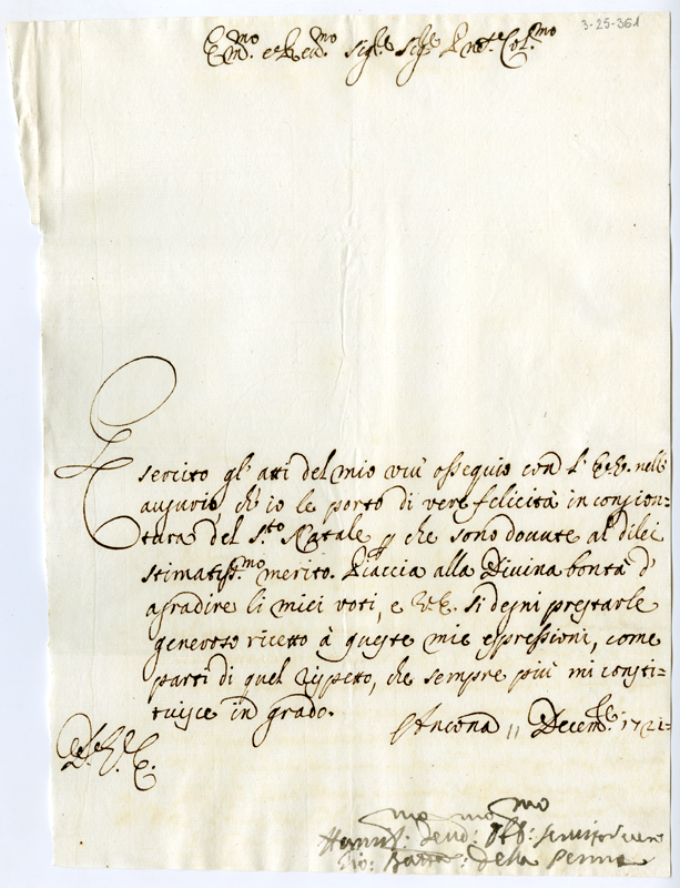 Lettera di Giovanni Battista della Penna al cardinale Annibale Albani (1721 dicembre 11)