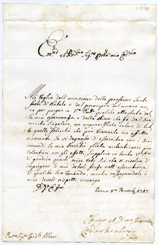 Lettera al cardinale Annibale Albani (1717 dicembre 8)
