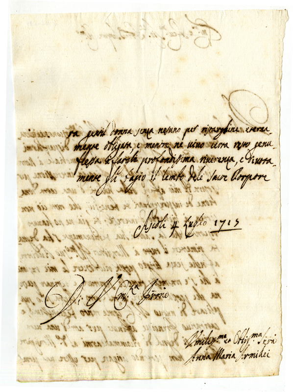 Lettera di Anna Maria Armillei al Cardinale Annibale Albani (1715 luglio 4)