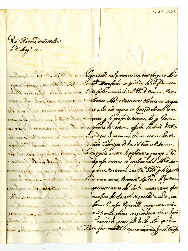 Lettera di raccomandazione a favore dell'abate Orazio Maria Manco e del sacerdote Nicolò da Castellamare (1717 maggio 8)