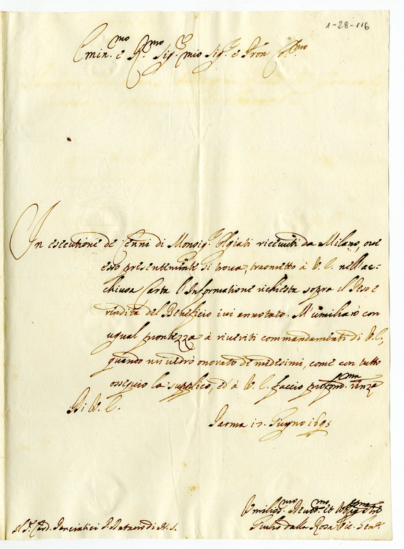 Lettera di Giulio della Rosa al Cardinale Panciatici (1695 giugno 17)